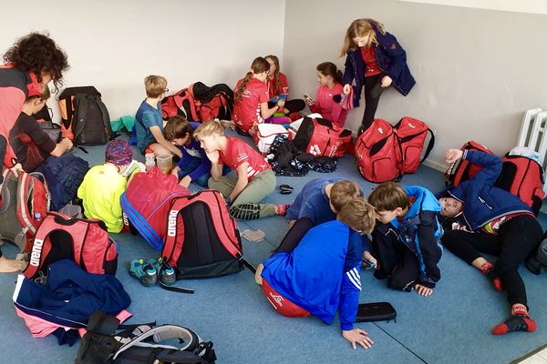 Als erstes haben wir noch kurz vor der Schwimmhalle gewartet, bevor wir reingegangen sind, um uns einen guten Platz für Rucksäcke und Co zu beschaffen.