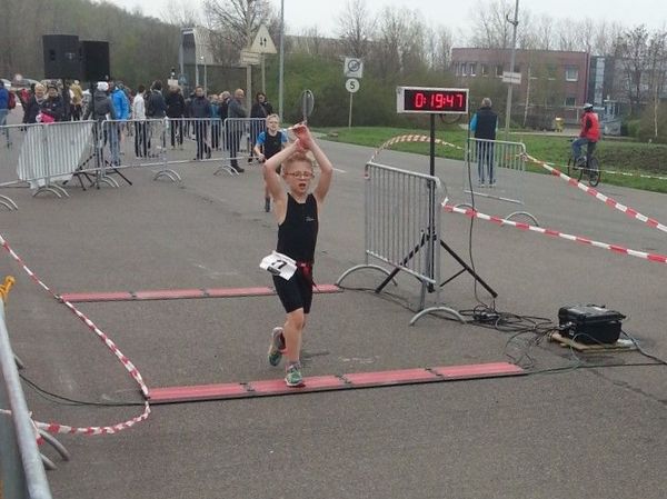 Als ich ins Ziel kam war ich richtig geschafft. Ich habe mir gleich 4 Gummibärchen-Tüten gekrallt. Finn ist besser gelaufen als sonst und Stan war auf dem Rad super und hat 8 überholt. Beide kamen nacheinander mit guten Platzierungen ins Ziel.