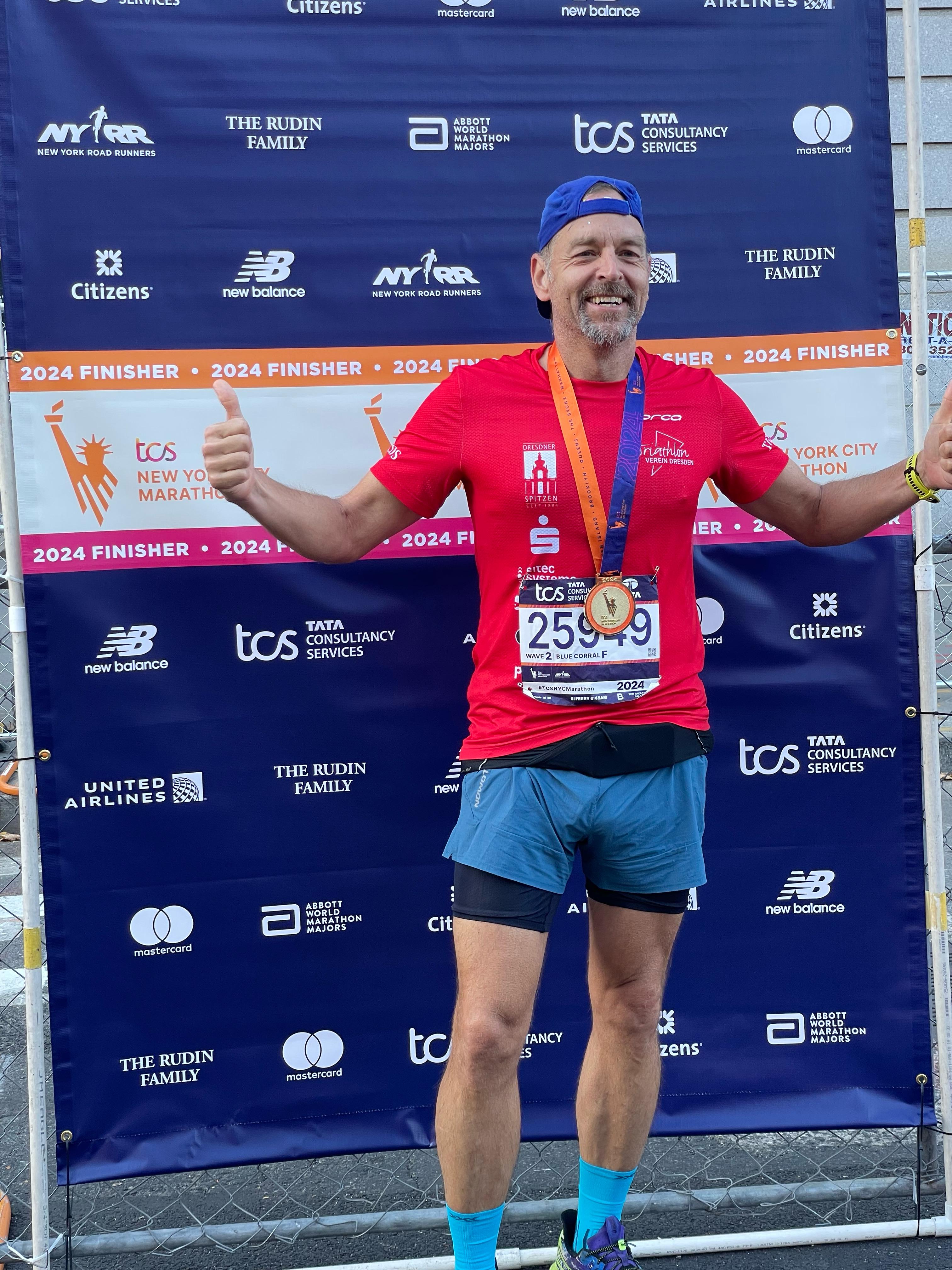 Die Strecke ist nichts für Top Zeiten, da doch etwas hügelig, aber da kam es bei den meisten auch nicht drauf an. Die endlosen Geraden haben einem veranschaulicht wieviele Leute laufen. Kurz vor dem Ziel entlang des Central Park mussten wir nochmal in uns gehen um das Ding zu beenden. Zu dritt kamen wir dann zeitgleich mit 3:58:59 ins Ziel und konnten somit eine Punktlandung erzielen. Entspannte Sub 4 mit Spaß und Freude.