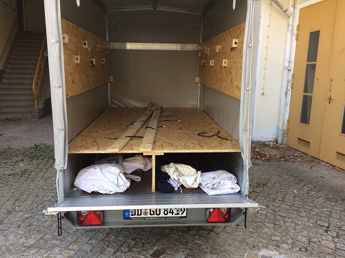 Nach dem Kauf wurde in Initiative von Martin-Baustel – alias Team Captain of the ladies – ein erster Hängerumbau vorangetrieben. Unter uns, er brauchte einen Grund, um sich endlich eine Handkreissäge zu kaufen ;-)