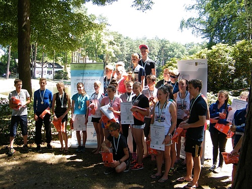 Die Siegerehrung nahmen der Präsident des Sächsischen Triathlonverbandes e.V. - Steffen Claus – und der Vertreter des Ministeriums – Jens Lätzsch – in feierlicher Form vor. Großzügige Sponsoren mit praktischen Präsenten und Pokalübergabe , sowie die Medaillen und die obligatorischen „Schulsport macht Laune“ - JtfO-T-Shirts rundeten als Belohnung einen spannend umkämpften, aber fairen Wettkampftag ab. Hier und heute kam das Motto „Schulsport macht Laune“ so richtig zur Anwendung. Hoffen wir auf die Teilnahme und Bereicherung aus den SBA's Bautzen und Chemnitz für 2016.
