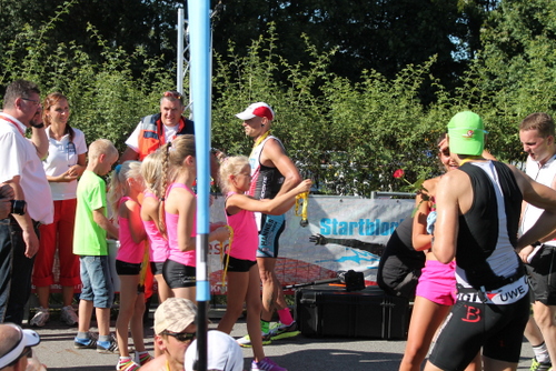 Völlig zufrieden trudelte ich auf Platz 5 ins Ziel, kurz danach zeigte Shootingstar Marco mit einem saustarken Mitteldistanz-Debut, dass man ihn in Zukunft immer auf der Rechnung haben sollte. Alle anderen TV'ler bewiesen ebenso enormen Kampfgeist und trafen nach und nach im Ziel zur üblichen Wettkampfauswertung und Getränkeaufnahme ein. Jule hatte in Roth bereits gezeigt, dass sie auch locker die doppelte Distanz schafft, so war ihr gestattet, den Körper schon vorfristig zu entlasten.