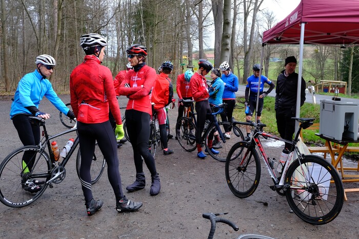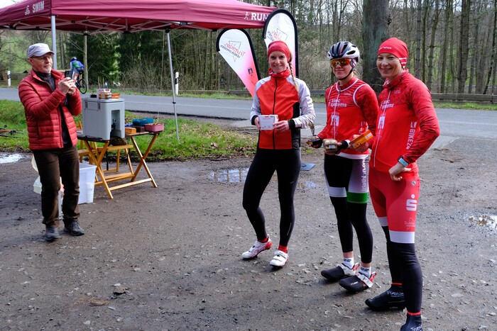 Im Rahmen der Siegerehrung wurden die neuen Wanderpokale in die Siegerhände vergeben. Die Sektduschen wurden wegen der kühlen Temperaturen verschoben. Im Anschluss fuhr ein großes Pulk gemeinsam über diverse Umwege nach Dresden zurück und beschloss so die erste gemeinsame Radausfahrt der Saison 2023.