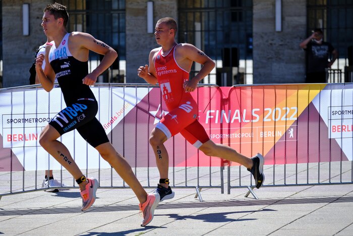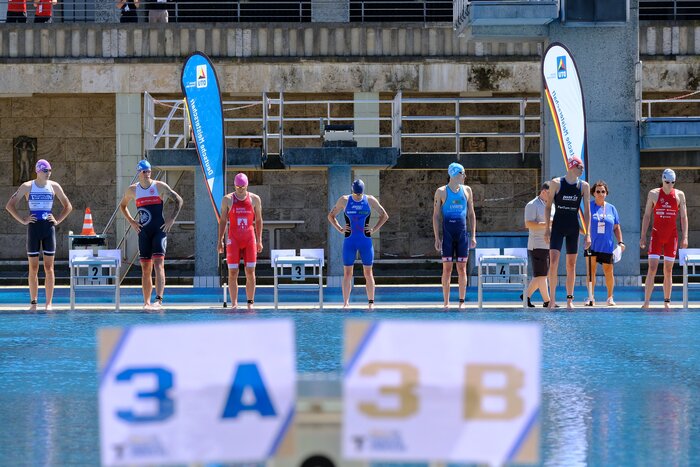 Die Titelkämpfe fanden als Auftakt der Triathlon-Rennen im Rahmen von “Die Finals Berlin 2022” rund um das Olympiastadion statt. Insgesamt war sowohl die Kulisse als auch die Organisation wieder sehr gut. Geschwommen wurde im 50-m-Freibad hinter dem Olympiastadion. Die Bahnen der Teams wurde nach der Vorjahresplatzierung vergeben und alle Athlet:innen eines Teams mussten auf eben dieser Bahn schwimmen. Aus organisatorischen Gründen mussten die Athleten und Athletinnen beim Schwimmen im 50-m-Freibad ohne Leinen auskommen. Was anfangs als schlechter Witz belächelt wurde, war nach dem Startschuss kein Problem mehr und lieferte in der Fernsehübertragung sogar die besseren Bilder.