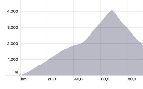 Entsprechend zurückliegender Touren ließ sich für Rennradnutzung eine Anstiegsgeschwindigkeit (in herkömmlichen Höhenlagen) von etwa 600 hm/h annehmen, was zu einer Belastungsdauer im Anstieg von über 7h führen würde, wenn das Rad zudem schwerer und beladener ist. Das eröffnete für die Zeit allein einen voraussichtlichen Flüssigkeitsbedarf von etwa 5 Liter (0,75 Liter/h). Daraufhin hieß es 3 zusätzliche Flaschenhalter mit Adapter zu beschaffen und das Einrichten eines Getränkedepots im Bereich der Halbzeit einzuplanen. Die Kohlenhydratzufuhr sollte über in den Flaschen aufgelöstes Maltodextrin und Oatsnacks erfolgen.