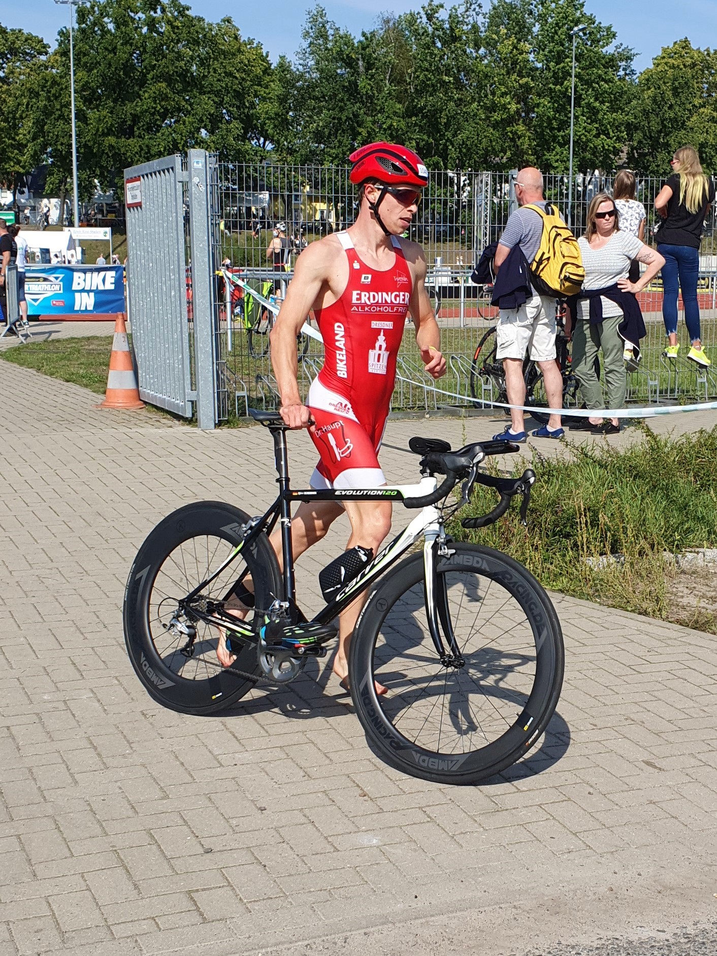 Dank unseres Sponsors Sitec Systems, der die Bundesligateams mit einheitlichen Helmen von Abus ausgestattet hat, konnten wir erstmals mit einheitlichem Kopfschutz unterwegs sein. Nachdem ich in der letzten Welle gestartet war, hatte ich genügend Sportler vor mir auf dem Rad, um nun eine Aufholjagd zu starten. Dank des neuen Helms, einer kurzfristigen Anpassung des Rennrades und guter Beine ging der Plan voll auf. Ich konnte auf der Radstrecke zahlreiche Sportler überholen und freute mich am Ende des Tages über die 9. schnellste Radzeit. Da hat sich der Helm doch bereits bewährt!