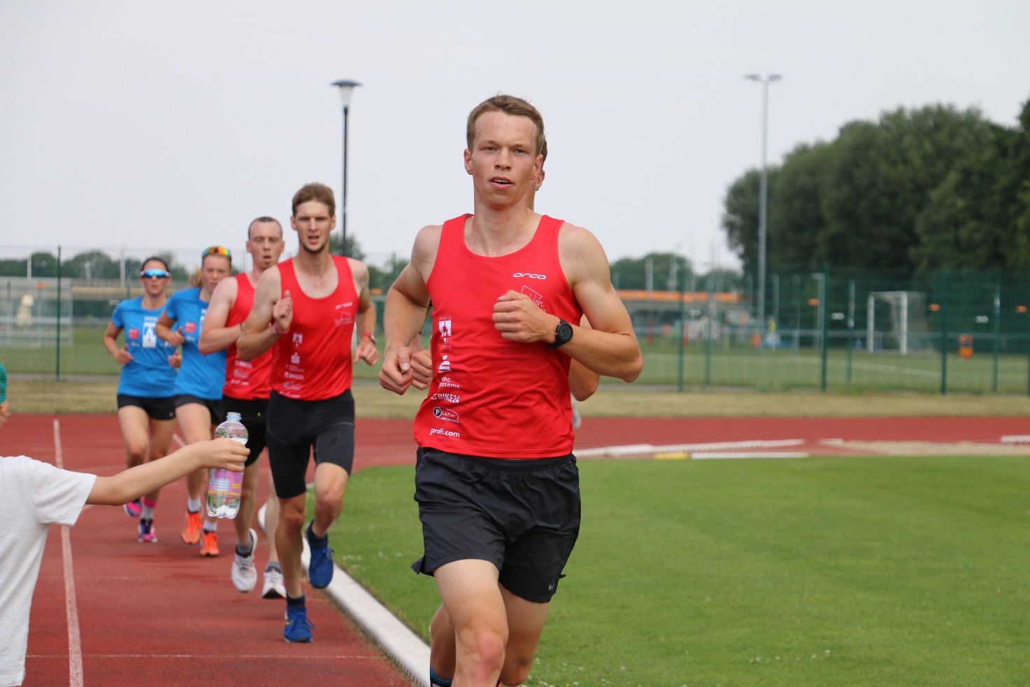 Nach dem Schwimmen fuhren wir alle gemeinsam zum Laufstadion im Ostragehege. Dort angekommen ruhten wir uns erst noch ein wenig aus, bevor es um 10 Uhr wieder mit dem Einlaufen losging. 10.30 Uhr fiel dann der Startschuss für die 5000m. Gleich zu Beginn ging Pauline Kühne in Führung. Als nächstes setzte sich Jana Richter ab. Sophie Gießmann, Anna Heyder, Sophie Lingelbach und Sophie Schumann bestritten die ersten Meter der 5000 m gemeinsam, bevor sich auch hier Sophie Gießmann absetzen konnte. Die drei anderen liefen bis zum Schluss gemeinsam, so dass es auf einen Zielspurt hinauslief. Pauline konnte mit einer Zeit von 18:11 min als Schnellste von allen überzeugen.